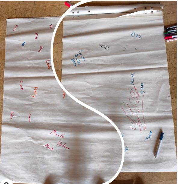Zwei Flipchartblätter auf denen die Namen der neuen Konfirmandinnen stehen – Foto: Boch