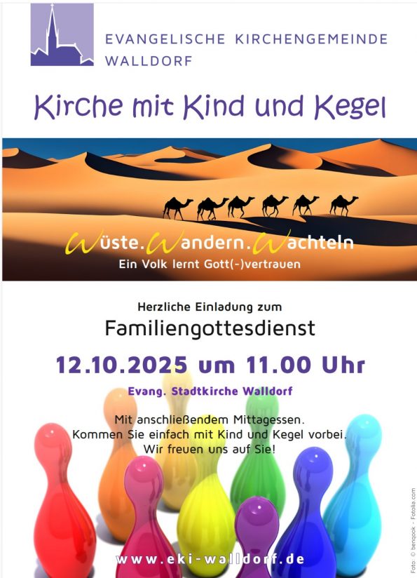 Wir wollen in unserem nächsten Gottesdienst mit Kind und Kegel am 12. Oktober 2025 um 11 Uhr in der evangelischen Stadtkirche Walldorf nachschauen, nachgehen, nachfühlen, wie es dem Volk Israel ergangen sein mag, als es aus Ägypten in die Weite der Wüste gelangte und Vorräte verbraucht waren. Das Thema Wüste.Wandern.Wachteln lädt ein, die Verzweiflung in der Wüste – oder einer (halb)leeren Kirche, das stete Wandern in den Tag hinein – oder auf viele freie Bänke – und doch das Vertrauen zu erleben, etwas zu finden, das den Hunger stillen wird. Neugierig? Gern.