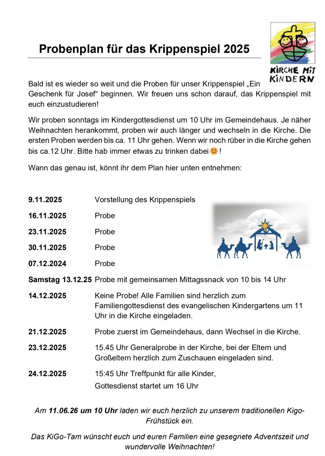Proben für das Krippenspiel „Ein Geschenk für Josef“ ab 9. November